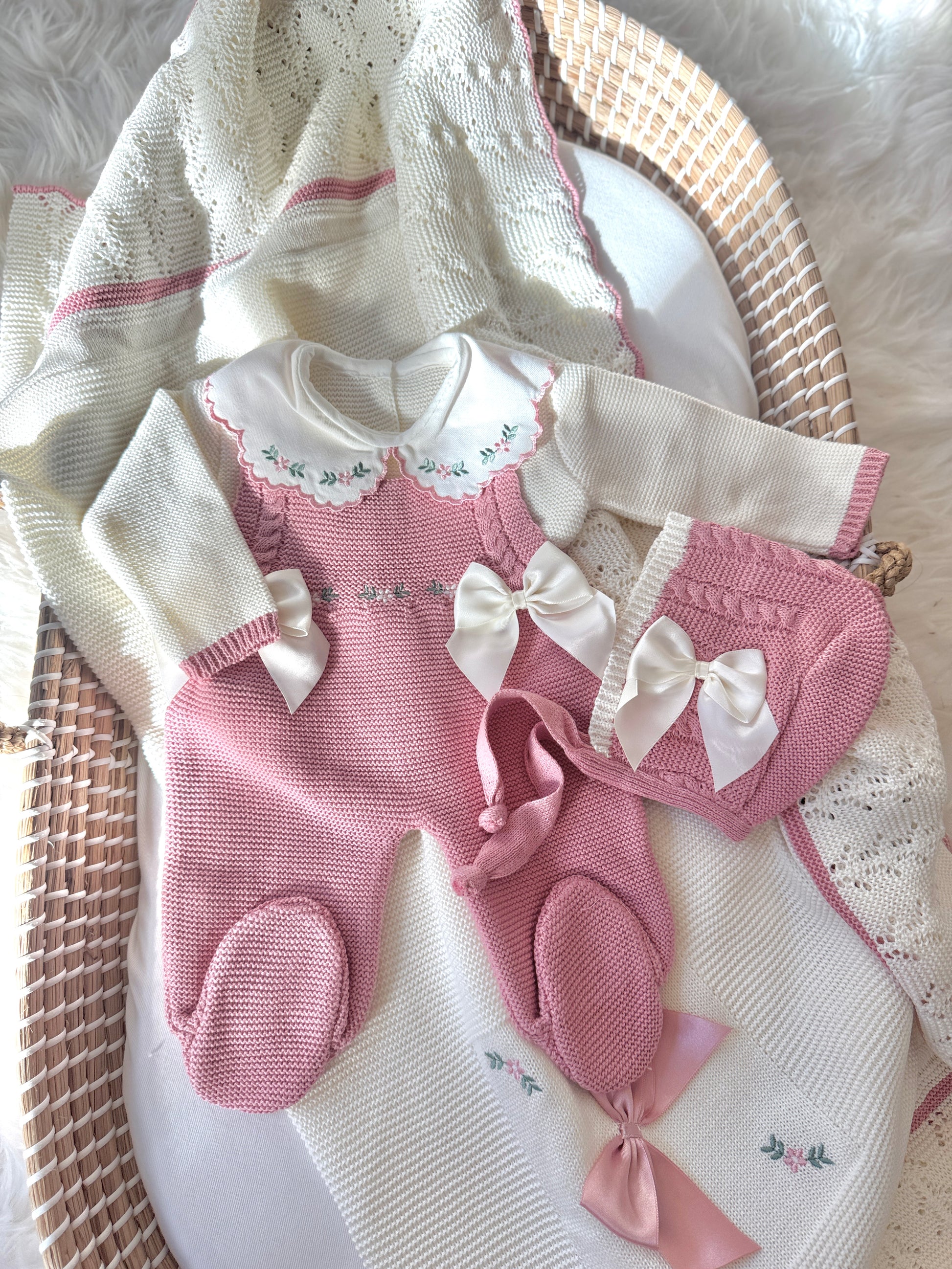 Presentamos el mono Alana en blanco y rosa palo: ¡la combinación perfecta de elegancia y alegría para tu pequeña! Este encantador mono cuenta con dos adorables lazos y detalles intrincados que harán que tu pequeña destaque.