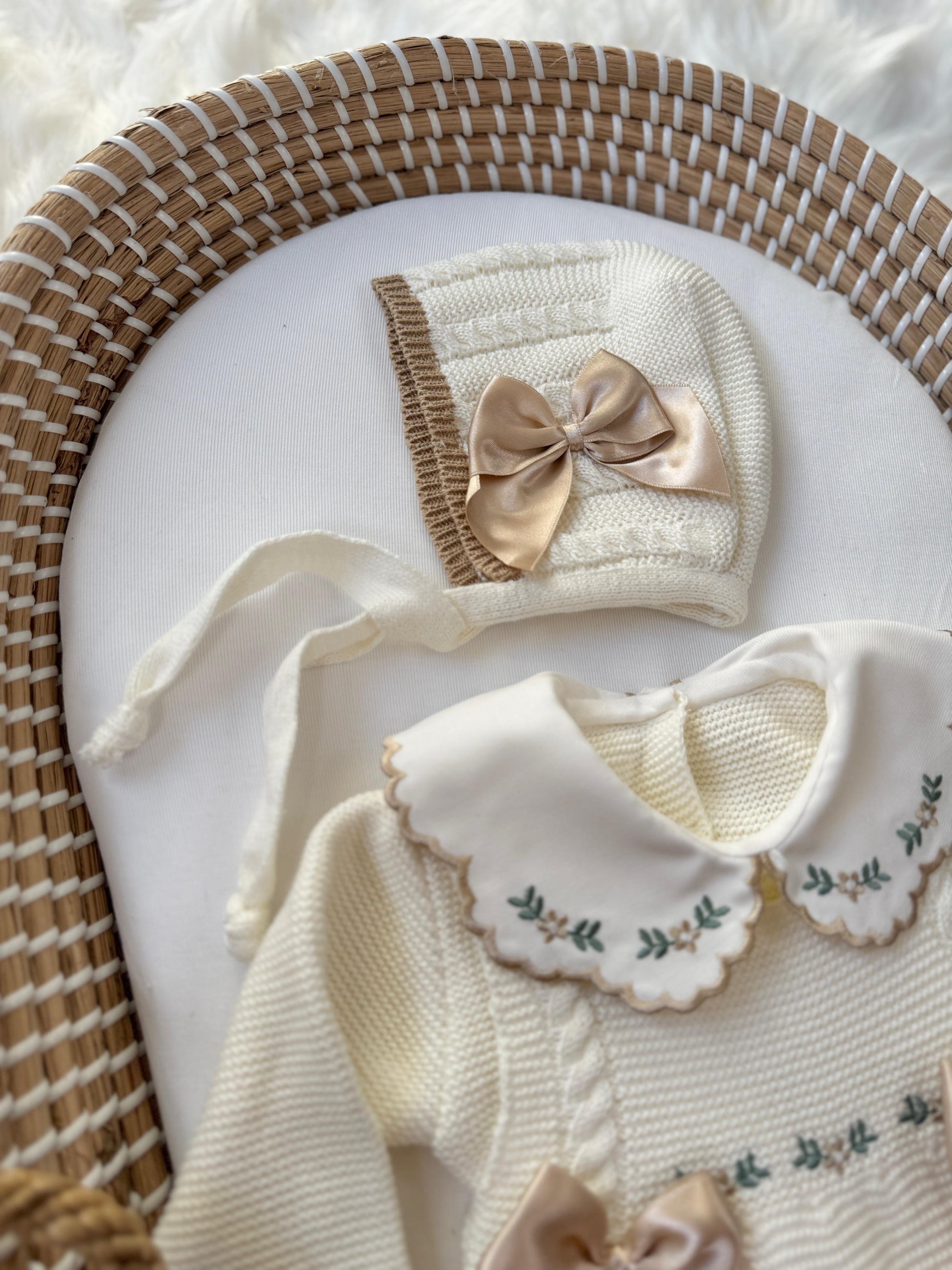 Introducing the Alana Overall in Cream - the perfect combination of elegance and playfulness for your little one! This charming overall features 2 adorable bows and intricate details that will make your baby girl stand out.