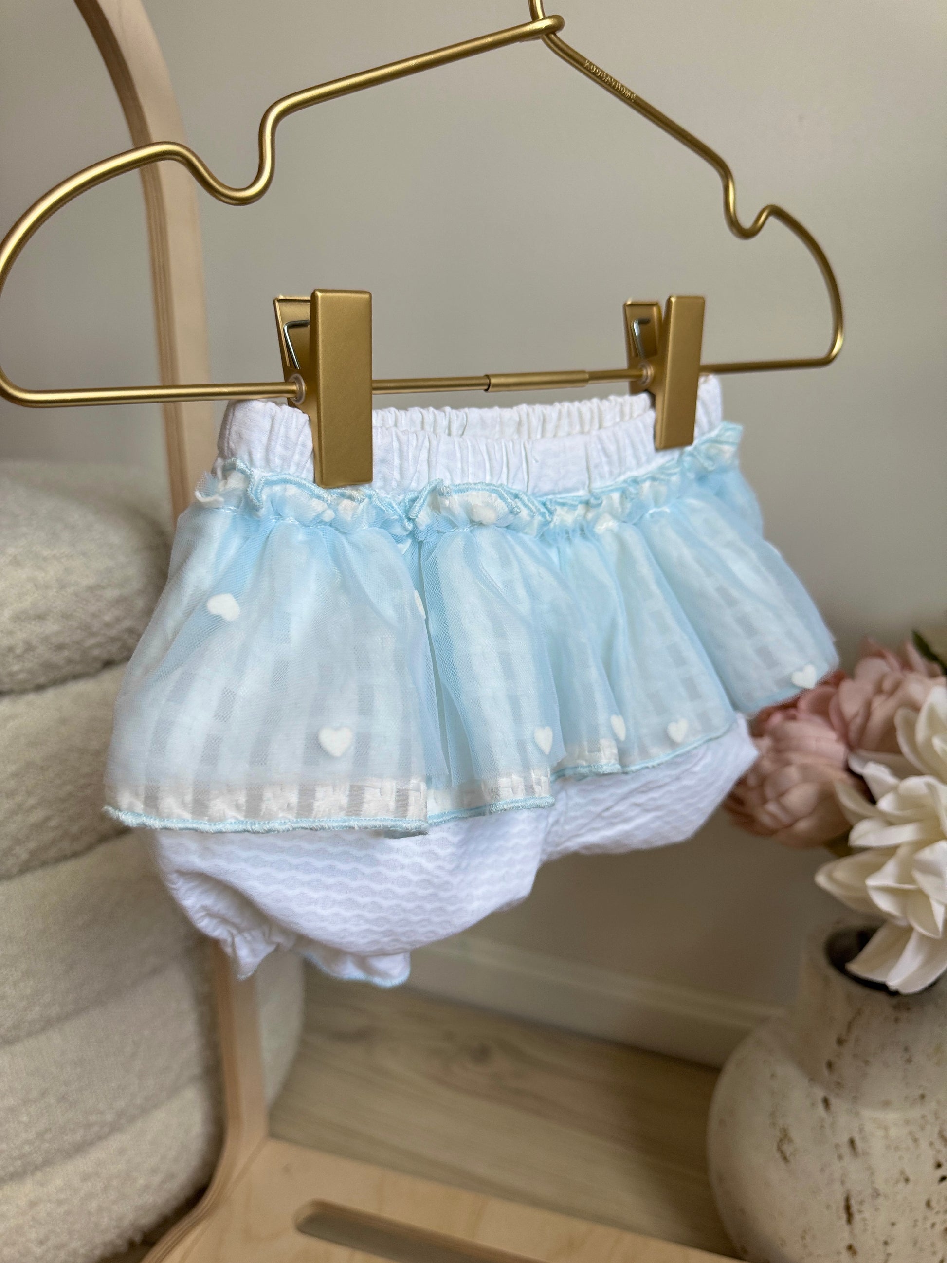 Elevate your little one's style with the Ava Dress! This stunning white occasion dress features delicate light blue tulle details, an adorable open back, and comes with a matching diaper cover. Perfect for any special occasion, they'll feel like a princess in this stylish and comfortable dress.