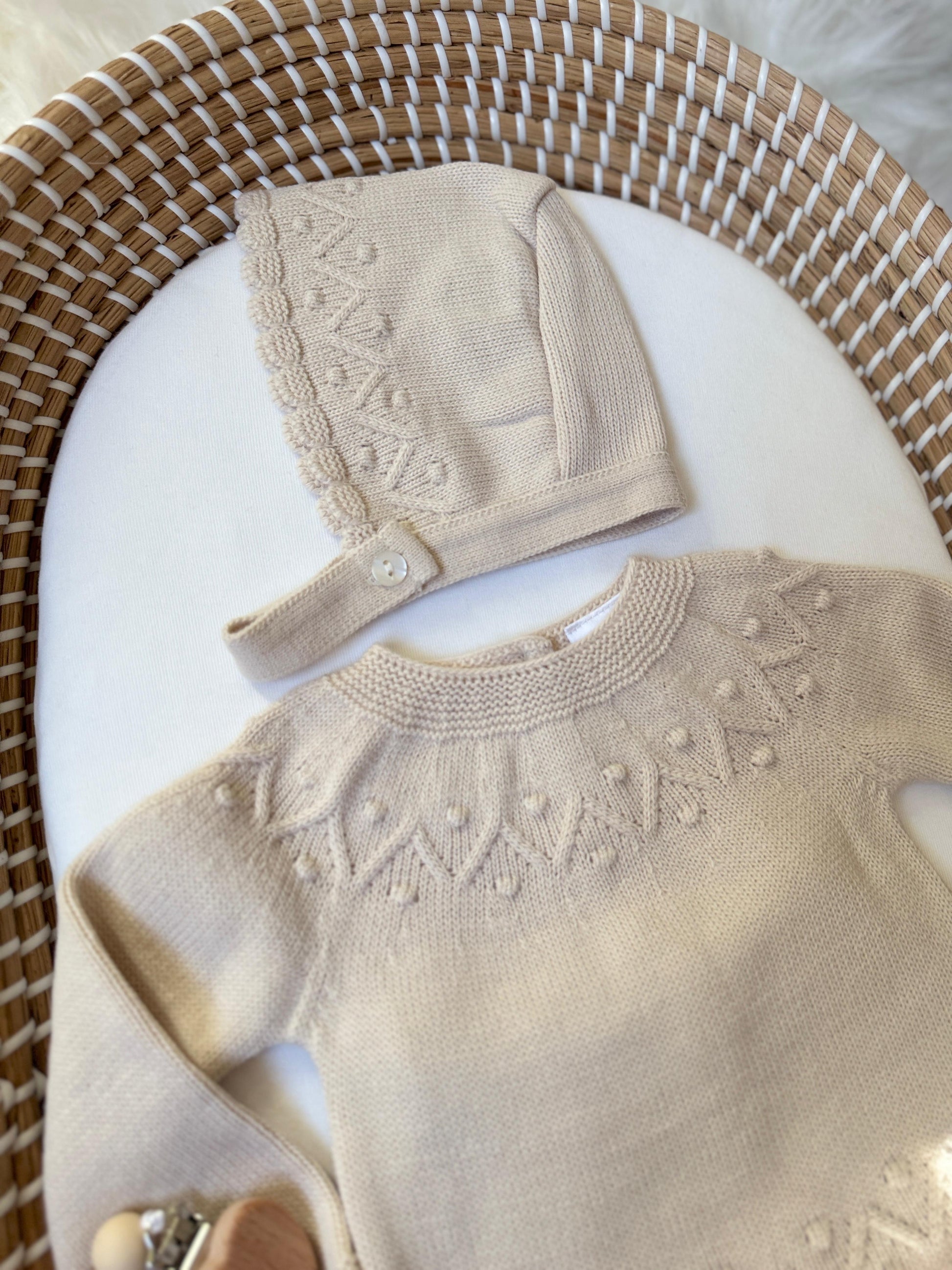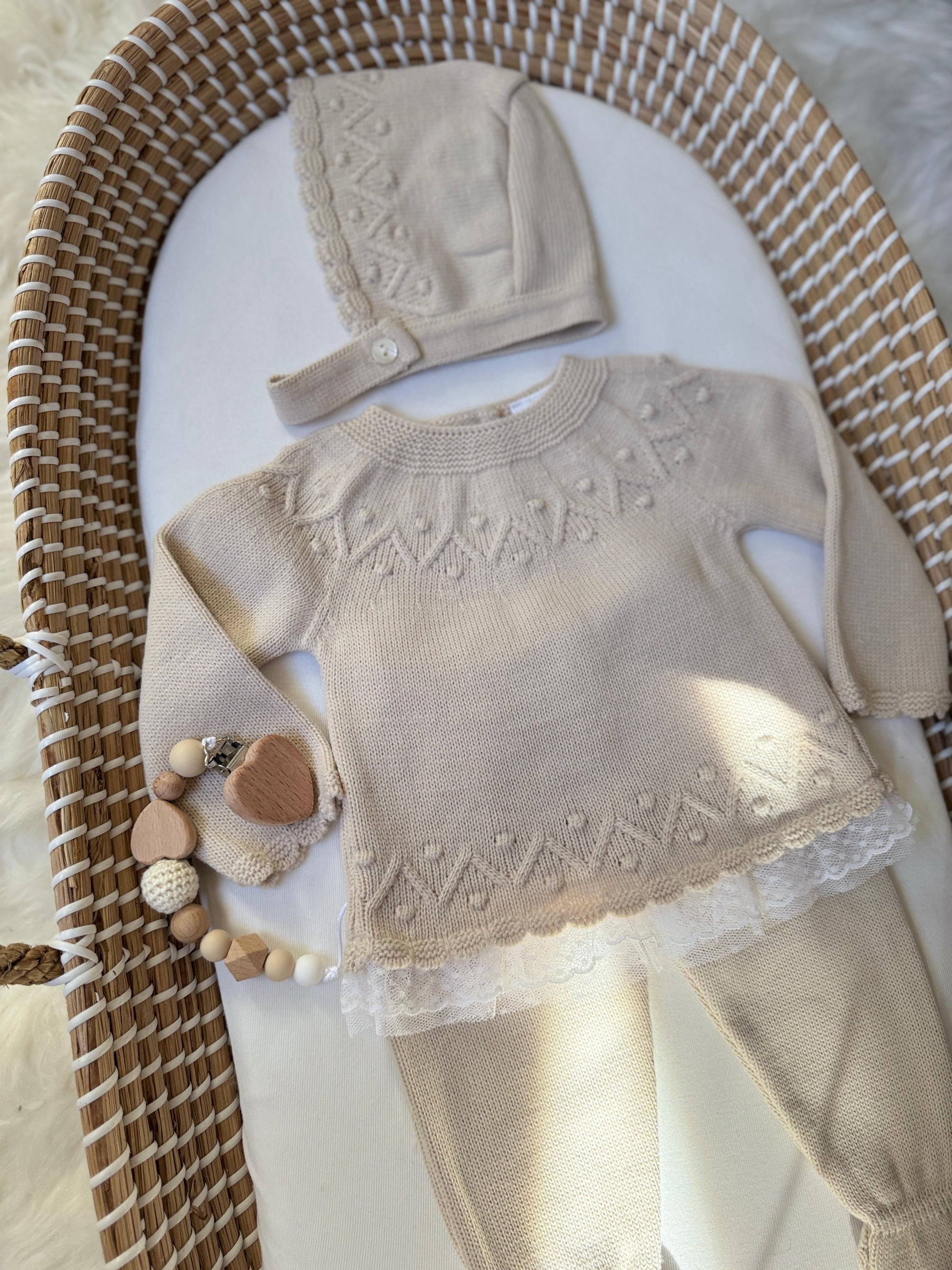 Experience the perfect combination of style and comfort with our Ashley Set in Beige! This adorable 3-piece set includes a cozy hat and pants.