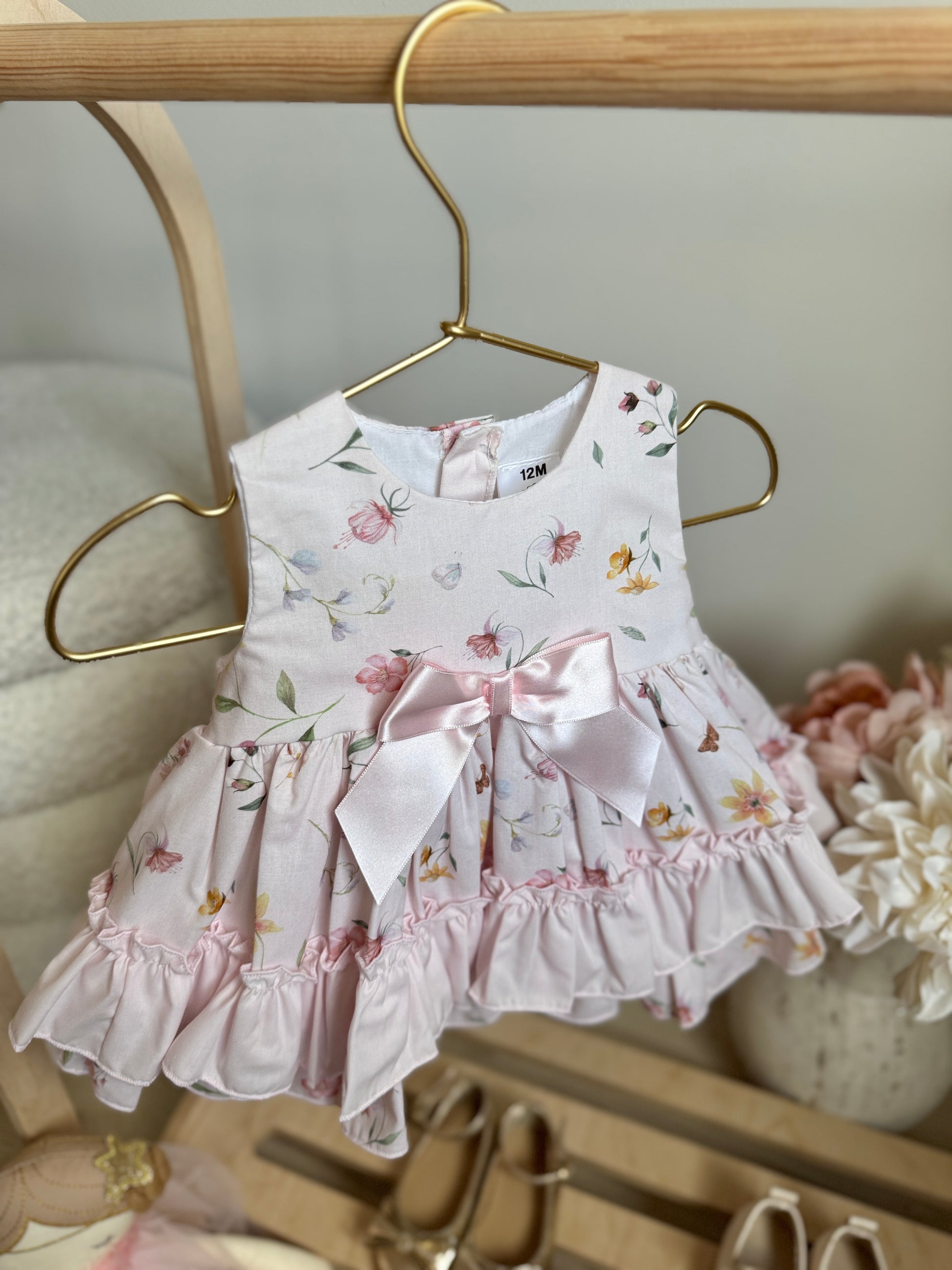"Unleash your inner flower power with our Daisy Dress in stunning floral pink. This occasion dress is adorned with elegant ruffles on the skirt and features a charming satin pink bow detail. Perfect for any special event, this dress will make you feel feminine and fabulous!"
