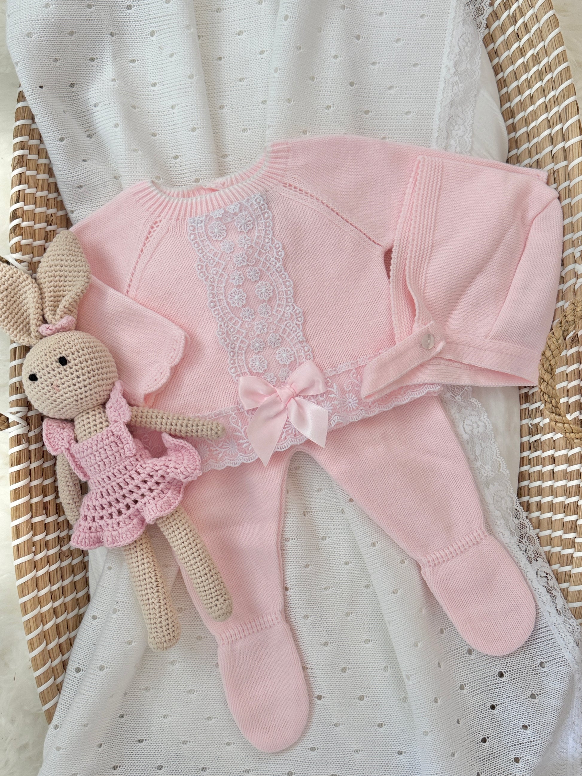 Introducing the Fidelia Knitted Set in Pink! Complete your baby girl's wardrobe with this Spanish-style 2 piece set. Elevate your little one's style with this versatile and charming set!