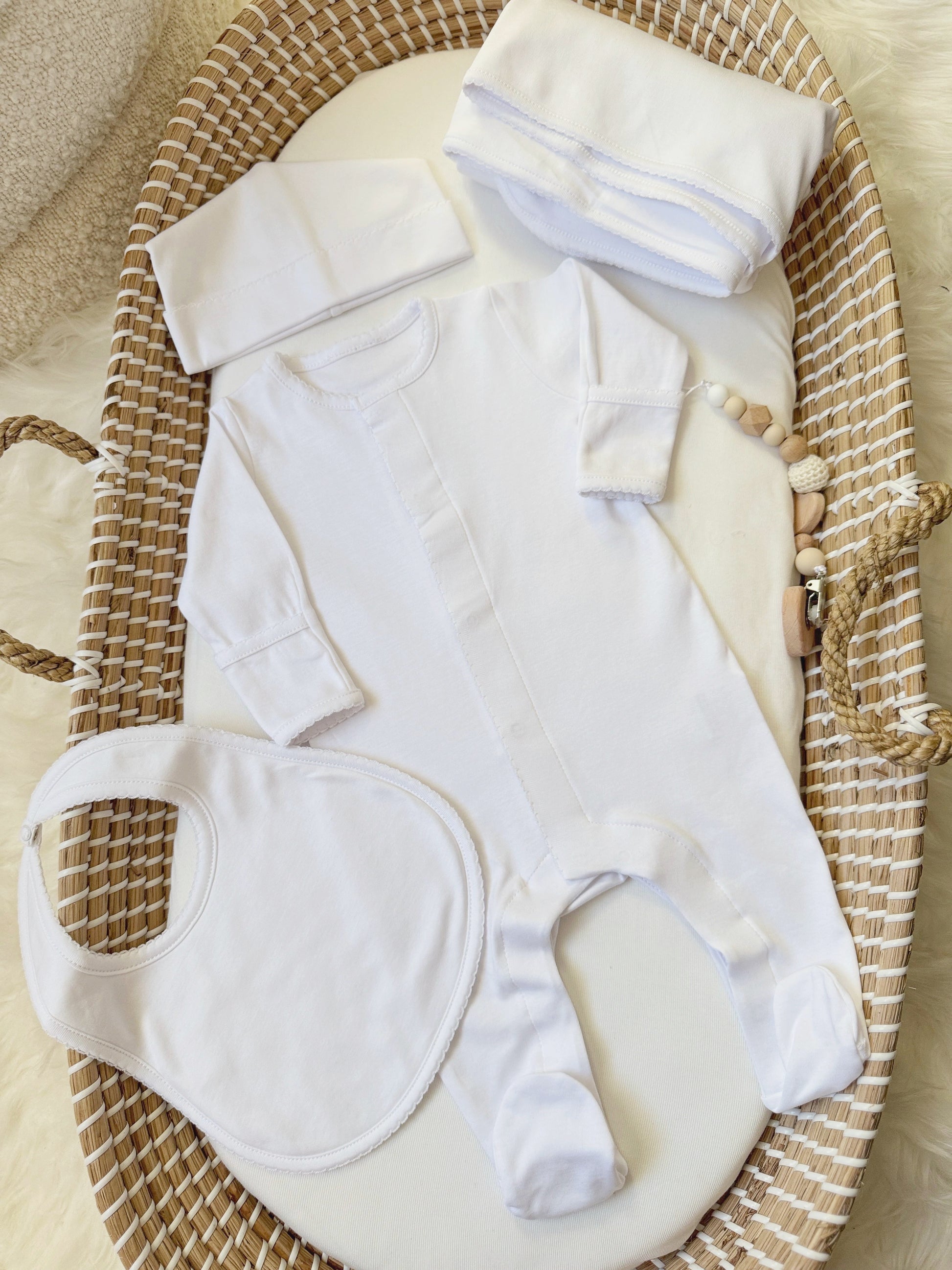 Our coming home outfit! What baby dreams are made of! 100% Pima Cotton material them so soft, classic and elegant. These sets are a hospital bag must have!