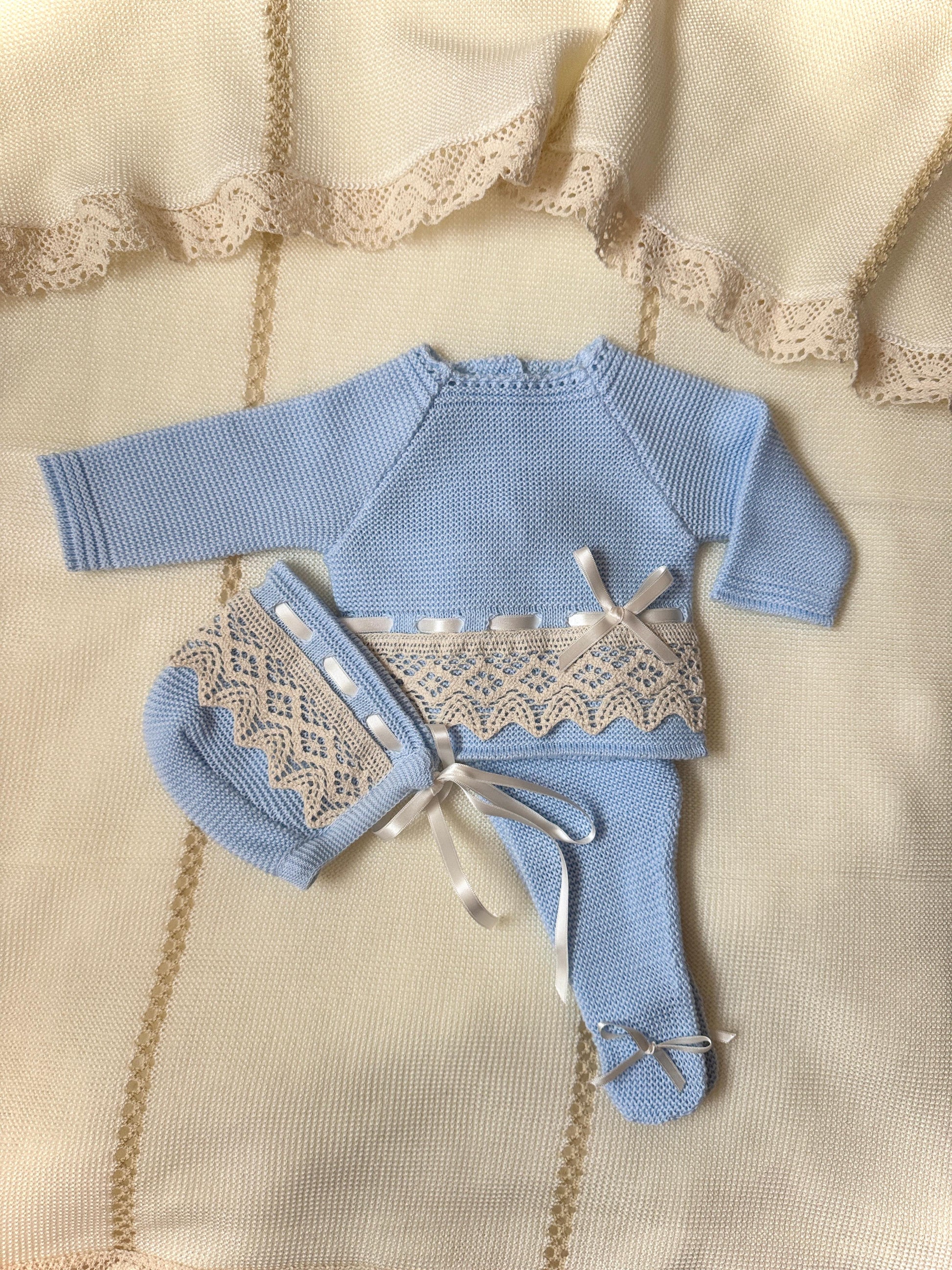 Dress your little one in style with our Oliver Set in blue! This 3-piece knitted set includes a top, pant, and hat, perfect for baby boys. Keep your little prince warm and cozy while looking adorable.