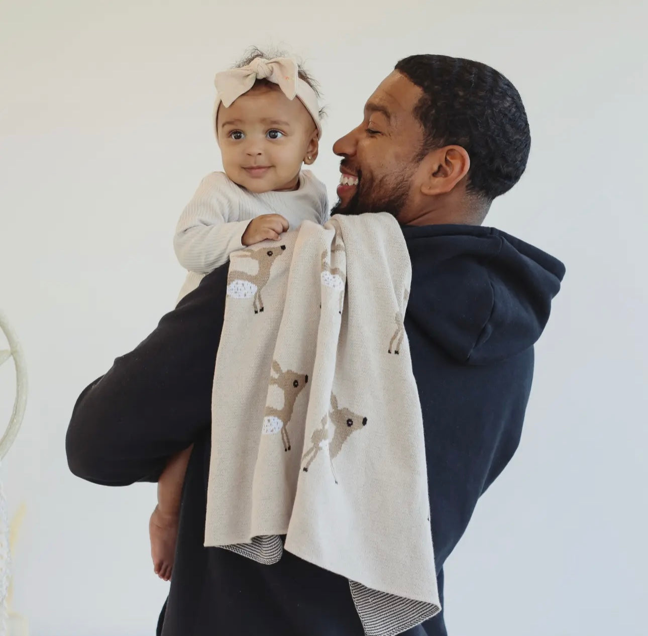 Introducing our Reindeer Blanket in Beige - made of 100% cotton and featuring adorable little reindeers, this blanket is perfect for newborns and can even be personalized. Stay cozy and stylish with this must-have accessory for your little one.