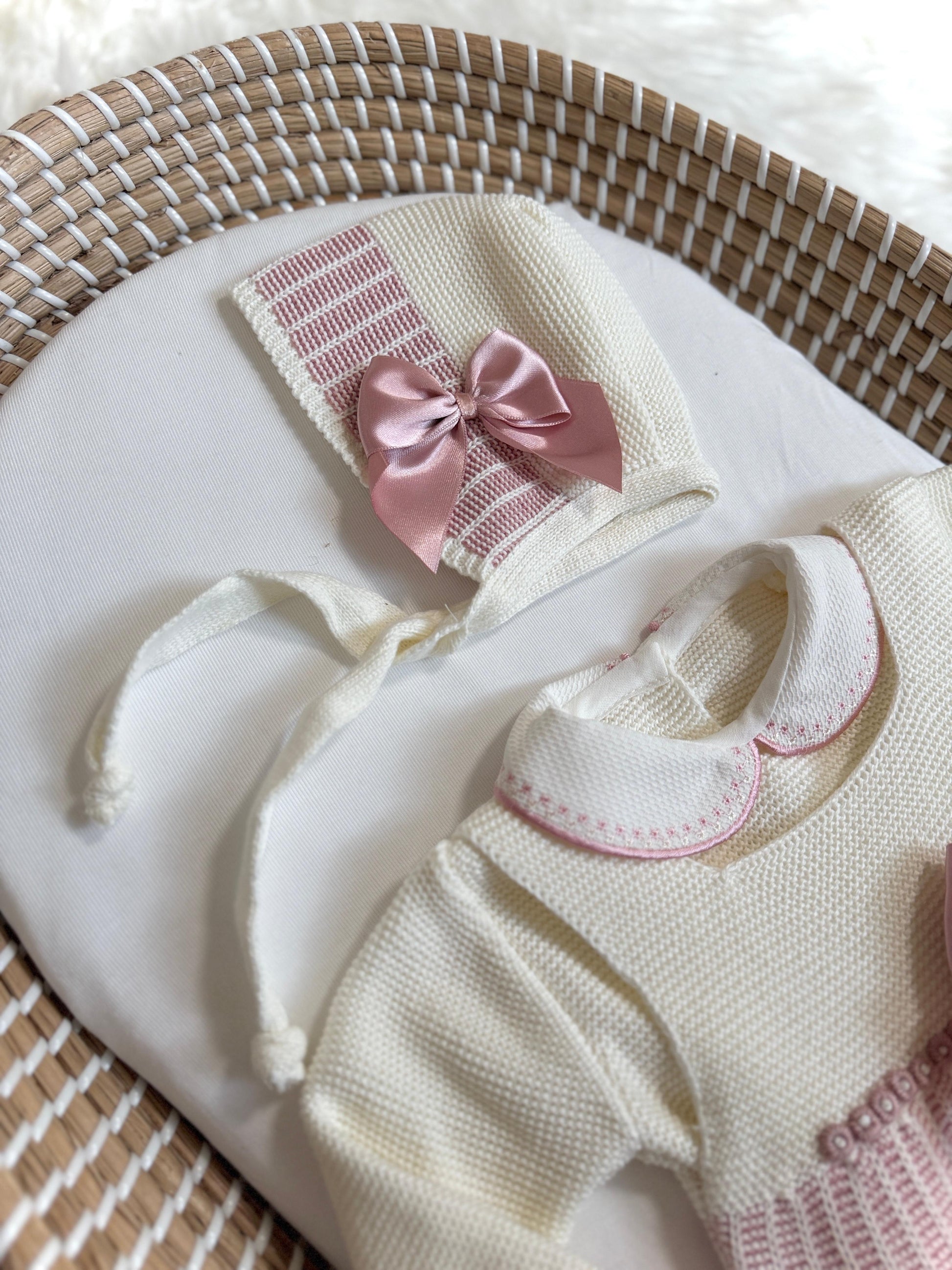 Introducing the Sandra Overall, the ultimate 3 piece set for your little one. Featuring a charming hat, overall, and bodysuit, this outfit is perfect for special occasions. Adorned with adorable bows, your baby will be the center of attention.