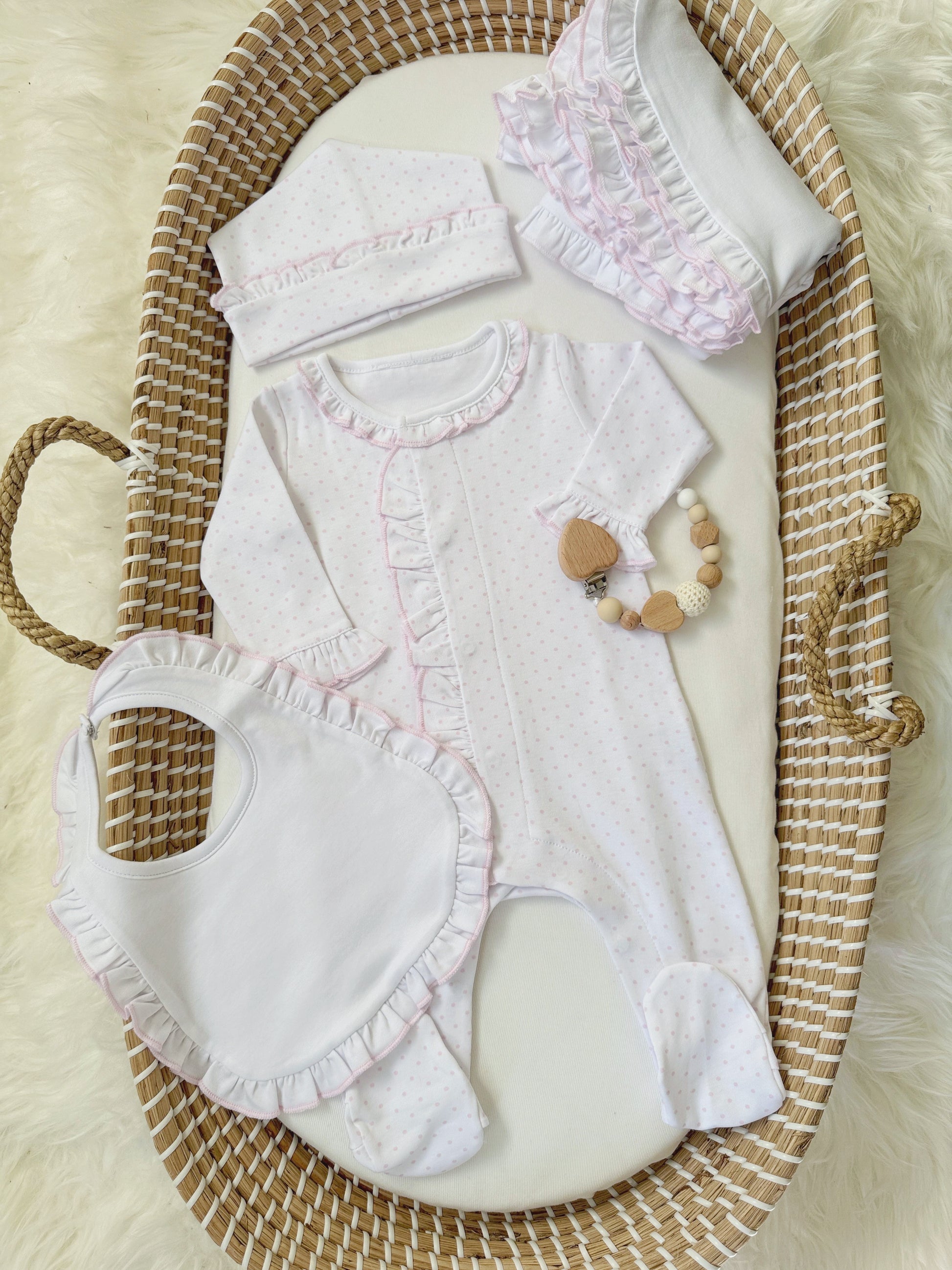 Our coming home outfit! What baby dreams are made of! 100% Pima Cotton material them so soft, classic and elegant. These sets are a hospital bag must have!