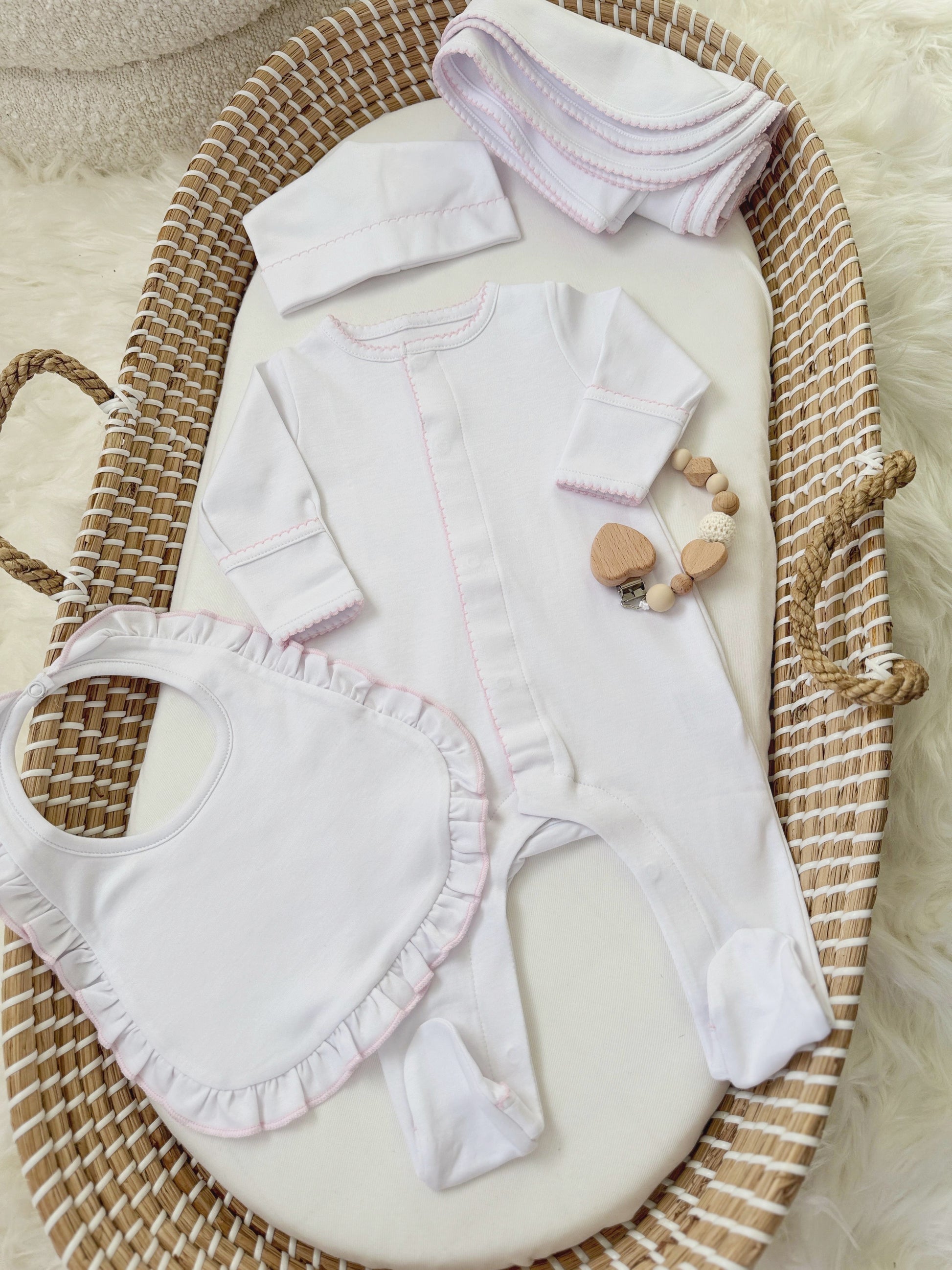 Our coming home outfit! What baby dreams are made of! 100% Pima Cotton material them so soft, classic and elegant. These sets are a hospital bag must have!